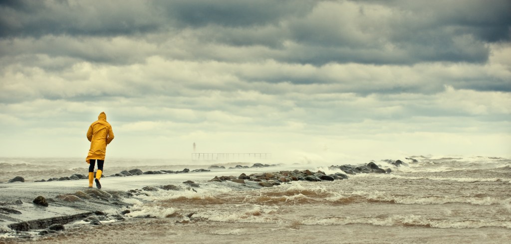 Have you ever been outside and suddenly caught in a huge thunderstorm? My family was on vacation, walking around in a downtown area, when a scary thunderstorm suddenly started out of nowhere. In the deluge of rain, thunder clapping, and lightning flashing, my whole family ran down the sidewalk trying to find shelter. As we were crossing a street, my youngest cousin couldn’t take it anymore. She stopped in the middle of the crosswalk, planted her feet, and started crying and screaming, refusing to move! We all felt the same way but had to keep moving to find refuge from the storm.